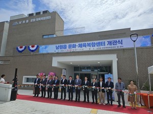 서귀포시 동부 지역 주민들의 다양한 체육활동과 문화 인프라 확장에 기여하게 될 남원읍 문화체육복합센터 개관식이 23일 개최됐다. 이날 개관식에는 오영훈 도지사를 비롯해 서귀포시장, 도의원, 기관 단체장, 주민 등 100여명이 참석했다. 남원읍 문화체육복합센터는 2019년 9월 문화체육관광부에서 공모한 생활체육시설 지원사업에 선정된 후 2020년 12월 건립 공사를 착공해 160억원(국비63억, 지방비97억)을 들여 조성한 문화체육복합 시설이다.연면적은 3560㎡로 지하1층 ~ 지상3층 규모로 건립, 주요 시설로는 수영장(25m, 7
