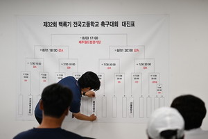 형들이 끌어올린 백록기 대회의 열기를 아우들이 이어간다.고교 축구의 중축이 될 저학년 선수들의 열정과 패기가 제주 그라운드를 달궜다.2024 백록기 고교 U17 축구 유스컵이 21일 공천포구장과 시민축구장, 효돈구장에서 개막했다.이번 유스컵은 지난해 우승팀 서울동대부고와 준우승팀인 부산부경고SCU18 등 전국 28개팀이 출전해 고교 저학년팀 최정상을 가린다.참가팀은 4개팀씩 7개조로 나눠 조별 풀리그를 벌인 뒤 각조 1·2위팀이 14강 토너먼트에 진출한다.7개조 가운데 고교축구 강자가 몰린 7조는 '죽음의 조'로 꼽힌다. 7조에는