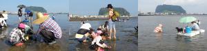 숨은 보석과 함께 가족의 정을 느끼며"이열치열, 불볕더위 모래찜질하면서 조개잡이 체험 즐겨봐요."본격적인 조개잡이 철을 맞아 서귀포시 성산읍 오조리 조개잡이 체험어장(한도교)에 500여 명의 인파가 방문해 인산인해를 이루고 있다. 해가 거듭할수록 많은 관광객이 찾고 있는 이곳은 물이 빠져 갯벌의 바닥이 드러날 때 쯤 바지락, 낙지, 작은 게 등의 해산물을 잡기 위한 사람들로 갯벌이 온통 울긋불긋 해진다. 인근지역에서는 아예 관광버스를 대절해 단체 관광객이 오고 있는 실정이다. 가족 단위로 걷다보면 아이들에게는 자연학습의 효과와