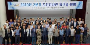도민감사관 청렴의식 함양과 타시도 시민감사관과 교류 활성화를 목적으로 제주특별자치도 감사위원회(위원장 양석완)는 지난 21일 웰컴센터 웰컴홀에서 2019년 2분기 도민감사관 정례 워크숍·회의를 개최했다.이날 워크숍에서는 도민감사관과 충청남도 아산시 시민감사관 및 관계자 80여명이 참석해 상호 교류 및 활동사례 발표와 연찬회를 가졌다.도민감사관과 아산시 시민감사관은 활동사례발표에서 향후 도민에 의한 자율적 행정통제와 감사행정에 대한 주민참여로 자치감사제도의 미비점을 보완하는 도민감사관의 본연의 기능에 대해 깊이 있는 논의가 이뤄졌다.