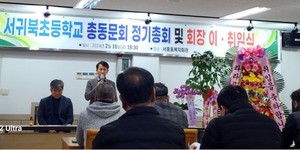 서귀북초등학교총동문회(회장 강성극)는 지난 16일 서홍동복지회관에서 정기총회 및 회장 이·취임식을 개최했다.강성극 신임회장은 "동문들의 단합을 통해 서귀북초의 역사와 전통을 계승·발전 시켜나가겠다"고 밝혔다.