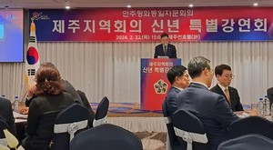 제21기 민주평화통일자문회의 제주지역회의(제주부의장 고충홍)가 지난 22일 제주썬호텔에서 신년 특별강연회를 개최했다. 이날 김관용 평화통일자문회의 수석부의장이 특별강연을 진행한데 이어, 김에스라 정책연구위원이 '2024년 한반도 정세 전망과 우리의 대응방향' 주제로 현안강연도 실시됐다.이번 신년 특별강연회에는 김경학 제주도의회 의장을 비롯해 김성중 제주도 행정부지사, 오순문 제주도 부교육감, 자문위원 등이 참석했다.고충홍 제주부의장은 "민주평통은 자유민주주의에 입각한 평화통일을 실천하기 위해 국민적 역량과 의지를 결집하는 헌법기관이