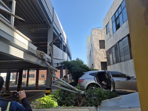 제주시 용담동 한 호텔 주차장에서 SUV가 추락하는 사고가 발생했다.13일 제주도소방안전본부에 따르면 이날 오전 7시20분께 제주시 용담동 한 호텔 주차장 2층에서 SUV가 추락해 인근 주택 지붕 위로 떨어졌다는 신고가 접수됐다.이 사고로 60대 운전자 A씨 등 2명이 부상을 입어 병원으로 이송됐다.경찰 등은 자세한 사고경위를 조사하고 있다.