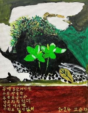 평균 나이 85세 할머니들이 붓을 잡고 환경에 대한 이야기를 풀어놓기 시작한다.뮤지엄선흘 추진위원회는지난 21일부터 선흘체육관에서 2024 지구의 날 기념전시 '오만백성들의 지구살이'를 열고 있다. 이번 전시는 강희선 할머니와 고순자 할머니를 비롯한 10명의 선흘1리 할머니들이 환경과 자연을 주제로 그려온 그림 60여점을 소개하는 자리다.뮤지엄선흘 추진위원회는 "올해 95세인 조수용 할머니는 지구는 하늘이고 땅이다고 말씀하신다"며 "86세 고순자 할머니도 자연의 소중함을 강조하셨다"고 전했다.그러면서 "평생 여성 농부로 자연과 함께