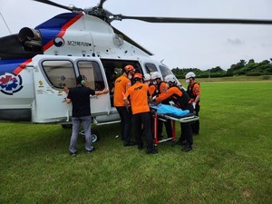 제주에서 고위험군 임신부 2명이 소방 헬기를 통해 도외 지역으로 이송됐다.26일 제주소방안전본부에 따르면 전날 오후 6시22분께 27주 고위험군 임신부가 조기 출산 가능성이 있다는 제주대병원의 신고가 접수됐다. 신고를 접수한 소방당국은 부산소속 소방 헬기를 호출해 임신부를 대구 지역 병원으로 이송했다.같은 날 오전 11시29분께 제주대병원에 있던 26주 고위험군 임신부가 광주 소방 헬기를 통해 도외 지역 병원으로 이송됐다.전예린 기자