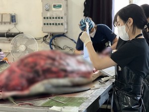 비린내가 나는 넓은 공간에서 회색 가운을 입은 사람들이 분주하게 움직였다.제주에서 숨진 채로 발견된 남방큰돌고래 '턱이'가 부검대 위에 올라와 있었다.30일 오전 9시께 수산자원관리공단 제주본부에서는 제주대학교와 강원대 연구진 20여명이 모였다. 최근 제주해역에서 사체로 발견된 남방큰돌고래 턱이의 부검을 위해서다.해양 수의사인 김상화 강원대학교 교수의 총괄 아래 제주대, 서울대, 충북대, 고래연구소 소속 연구진들이 체내 오염물질 잔류 여부 등 사인을 세밀하게 분석했다.부검대에 오른 턱이는 지난 2019년 제주 해안가에서 처음 발견돼