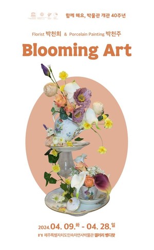 제주도 민속자연사박물관(관장 박찬식)은 오늘(9일)부터 28일까지 갤러리 벵디왓에서 '블루밍 아트(Blooming Art) 박천희 & 박천주' 작품전을 개최한다.이번 전시를 기획한 박천희와 박천주는 친자매로, 꽃을 좋아하던 언니와 꽃을 싫어하던 동생이 의기투합해 꽃의 예술성을 선보인다.전시장은 휘황찬란한 화훼장식를 비롯해 꽃과 붓으로 치장한 도자기 작품들로 가득 채워진다.박천희 작가는 "저마다 개성이 있듯 꽃들에게도 각자의 색, 모양 등 서로 다른 개성과 향을 지닌다"며 "홀로 핀 장미보다는 장미 곁을 감싸주는 다른 꽃들이 있어 더
