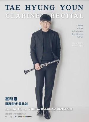 제주 출신 클라리넷 연주자 윤태형의 독주회가 오는 19일 오후 7시 제주대학교 아라뮤즈홀에서 열린다. 2018년 이후 일곱 번째로 선보이는 개인 연주회다.오케스트라에서 목관악기로 분류되는 바순, 오보에, 플루트의 곡들 중 유명한 곡들로 선정해 '클라리넷'으로 연주해 원곡의 느낌과 어떻게 다른지, 음악의 표현이 얼마나 다양한지를 느낄 수 있도록 하는 등 음악 애호가들에게 다양한 매력의 클라리넷 연주를 선보일 예정이다.윤 씨는 "클래식이라면 어렵다고 생각하는 도민들에게는 조금 더 쉬운 재즈곡, 널리 알려진 애니메이션 ost 등 쉬운 곡