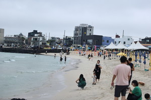 "삑! 안전선 안으로 들어와 주세요"제주지역 해수욕장이 조기 개장한 첫날인 24일 오전 11시30분께 제주시 협재해수욕장 안전요원은 이마에 송골송골 맺힌 땀을 닦아내며 이렇게 외쳤다.평일임에도 불구하고 해수욕장에는 초여름 무더위를 피해 찾은 관광객들의 발길로 북적였다.이날 주황색 옷을 입은 안전요원들은 망루 위에 올라 호루라기를 불며 입수객 안전을 관찰하느라 분주했다.다른 요원들도 해변에서 호루라기를 불며 깊은 바다로 이동하는 물놀이객들을 통제하며 굵은 땀방울을 흘렸다.같은 날 제주시 금능해수욕장도 산책과 나들이를 나온 시민들로 활