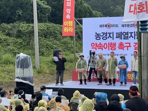 동복리 주민들이 제주도가 약속한 농경지 폐열 지원사업 이행을 촉구하며 제주환경자원순환센터 진입로를 이틀째 폐쇄하고 있다. 이 여파로 도내 쓰레기 대부분을 처리하는 시설이 폐쇄되면서 '쓰레기 대란'이 현실화됐을 뿐만 아니라, 주민과 행정간 첨예한 입장차로 사태 장기화가 우려되고 있다.제주시 구좌읍 동복리 주민들은 지난 7~8일 환경자원순환센터에서 도가 센터 건립 당시 약속한 농경지 폐열 지원사업 이행을 촉구하며 진입로 봉쇄 등 강경 대응에 나섰다.지난 7일 오전 8시 동복리 주민들이 앞서 예고한대로 진입로를 봉쇄해 쓰레기 수거 차량의