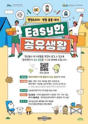 제주청년센터(센터장 이성재)는 오는 17일부터 11월까지 도내 청년들을 위한 '공유물품 대여사업: Easy한 공유 생활' 사업을 시작한다고 밝혔다.센터에서 대여하는 공유물품은 취미·여가물품(액션캠, 빔프로젝트, 공구류 등)과 캠핑물품(텐트, 의자, 테이블, 화로대, 랜턴 등)이다.운영 장소는 제주청년센터(취미·여가물품)와 아토즈 캠핑(캠핑물품)이다.1명당 최대 5개를 신청할 수 있으며 도내 활동하거나 거주하는 청년(고교 졸업예정자~39세)이면 누구나 이용할 수 있다. 대여 기간은 주말을 포함해 4박 5일이다.신청은 제주 거주 또는