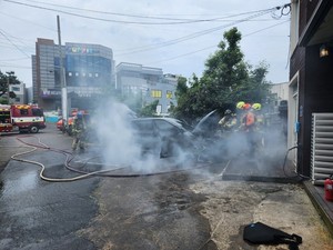 서귀포에서 주차중이던 EV6 전기차에서 연기가 난다는 신고가 접수돼 119가 출동했다.6일 제주도소방안전본부에 따르면 이날 오후 1시 15분께 서귀포시 남원읍의 한 건물 주차장에서 EV6 전기차에서 연기가 난다는 신고가 접수됐다. 당시 전기차는 충전 중인 상태가 아닌 주차 중으로 다행히 인명피해는 발생하지 않았다. 출동한 119는 전기차 이동식 소화 수조 등을 투입해 배터리 온도를 낮추는 작업을 벌였다.소방 당국은 연기 발생 원인 등 정확한 사고 원인을 파악 중이다.