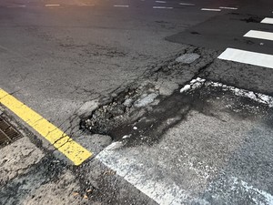 폭설과 제설 작업 등으로 포트홀(도로 파임) 현상이 가속화되는 겨울철을 앞둔 가운데 여전히 도내 도로 곳곳이 손상된 채 방치되면서 운전자는 물론 보행자의 교통안전을 위협하고 있다.포트홀 보수마저 매년 일시적인 '땜질식 구멍 메우기'에 그치면서 근본적인 문제 해결을 위한 대책 마련이 시급하다는 지적이다.15일 오후 제주시 연동의 한 사거리에는 렌터카와 트럭 등 수많은 차량이 통행하는 도로 사이 큼지막한 크기의 포트홀이 생겨나 있었다.이곳은 공항과 밀접한 주요 도로로, 승용차의 통행은 물론 특히 화물차의 통행이 잦은 곳이기도 하다.일대