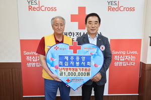 제주중앙적십자봉사회(회장 이수철)는 5일 대한적십자사제주특별자치도지사(회장 오홍식)를 방문해 도내 난치병 학생을 지원하기 위한 성금 100만원을 기탁했다.이번 성금은 제주중앙적십자봉사회 회원들이 뜻을 모아 마련한 것이다.제주적십자사는 제주도교육청과의 협업을 통해 대상자를 발굴·선정해 지원할 계획이다.이수철 회장은 "학생들의 꿈과 미래가 난치병으로 인해 좌절되지 않도록 돕고자 회원들과 십시일반 정성을 모았다"며 "앞으로도 지역사회에서 사랑과 봉사를 꾸준히 실천하겠다"고 말했다.한편 제주중앙적십자봉사회는 1989년 창립한 이후 모범학생