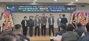 서귀포시 성산일출봉농협(조합장 박명종)은 지난 26일 본점 2층 대회의실에서 내·외빈, 대의원, 임직원 등 130여 명이 참석한 가운데 '2025년도 제53기 정기대의원회'를 개최했다.이날 행사엔 현기종·양홍식 제주특별자치도의원, 김경범 성산읍장, 김승현 동부농업기술센터 소장, 강대규 제주농협 서귀포시지부장, 강병헌 강원도 남원주 농협 조합장, 양승호 농협 네트웍스 제주지사 지사장, 각 마을 영농회장, 부녀회장, 단체장, 역대 조합장, 임원, 내부조직장 등 주요 내·외빈이 참석해 자리를 빛냈다.1부 행사는 지난 7개월의 기간 동안