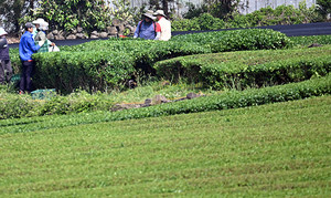 20일 약간 흐리고 다소 쌀쌀한 날씨를 보인 가운데 제주시 애월읍 녹차다원에서는 한 주민이 여유롭게 산책을 즐기고 있다. 김용현 기자