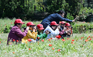 왕벚꽃이 모두 지면서 아쉬움을 남긴 가운데 지난 15일 제주시 애월읍 광령리에 겹벚꽃이 활짝 펴 관광객들이 휴대전화로 추억을 남기고 있다. 김용현 기자