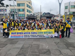 제주시는 지난달 28일 동문공설시장을 찾아 올바른 음주문화실천을 주제로 안전문화운동 캠페인을 펼쳤다.이날 캠페인을 통해 △음주운전 근절 △주취폭력 근절 △과도한 음주 근절 등 3가지 근절사항과 함께 △안전교육 △걷기운동 △위험요인 안전신고 등 3개 실천과제가 제시됐다.이날 제주시 안전보안관 등 50여명이 홍보 문구가 적힌 장바구니를 동문시장 방문객들에게 배부했다. 제주시 관계자는 "보다 안전하고 건강한 제주를 만들기 위해 시민 모두가 음주문화 개선에 동참해 달라"고 말했다.