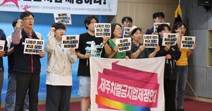 12·3 내란으로 열린 광장에서 제 목소리를 낸 성소수자·장애인·이주민 단체 등이 한 데 모여 사회적 소수자에 대한 차별과 혐오를 막기 위한 차별금지법 제정이 시급하다고 한목소리를 냈다.제주차별금지법제정연대와 윤석열정권퇴진·한국사회대전환 제주행동, 2025제주차별철폐대행진 공동기획단은 22일 오전 제주도의회 도민카페에서 기자회견을 열어 차별금지법 제정을 촉구했다.이들은 "광장이 이끌어낸 대선이다"며 "광장을 대변하는 후보라면 지금이라도 포괄적 차별금지법 제정을 공약하라"고 촉구했다.그러면서 "포괄적 차별금지법 제정은 우리 사회의 가