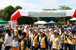 17일 '제주사랑 자선 만보 걷기대회' 성황제주적십자사 주최…'1걸음 1원씩' 슬로건모금 목표 1억원 초과 달성…"희망 전파"제주 도민 800여명의 따뜻한 나눔 발걸음이 이어졌다.대한적십자사 제주도지사(회장 정태근)는 17일 제주시 평생학습관에서 '1걸음에 1원씩'이라는 슬로건으로 '2025 제주사랑 자선 만보 걷기대회'를 개최했다.이날 걷기대회에는 김애숙 제주도 정무부지사와 박호형 제주도의회 행정자치위원장, 김광수 제주도교육감, 김태환 전 제주도지사, 오홍식 제민일보 대표이사 등 내·외빈 800여명이 함께했다.이들은 준비체조 이후