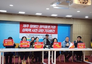 지적장애 학생들을 성추행한 혐의로 제주장애인 권익옹호기관 조사관이 구속된 가운데 시민사회단체들이 철저한 책임 규명과 제도 개선을 촉구하고 나섰다.제주장애인 권익옹호기관 성폭력사건 공동대책 위원회는 30일 오전 제주도의회 도민카페에서 기자회견을 열고 제주도를 향해 재발 방지 대책과 제도 개선 등을 촉구했다.이들은 "이번 사건은 개인의 일탈이 아니다"며 "최고 책임 주체인 제주도와 운영법인으로서 직접적 책임 주체인 제주장애인인권포럼에게 그 책임을 물어야 한다"고 주장했다.이어 "파렴치하고 폭력적인 사건이고 그 사건을 수습하는 과정에서