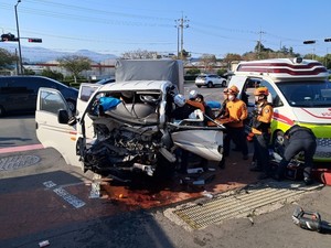 서귀포시 남원읍 한 교차로에서 트럭 2대가 충돌해 1명이 숨지고 3명이 부상을 입었다.15일 제주도소방안전본부에 따르면 이날 오후 4시24분쯤 서귀포시 남원읍 위미입구 교차로 인근에서 1t 트럭 2대가 충돌하는 사고가 발생했다.이 사고로 트럭 운전자 70대 남성 A씨가 심정지 상태로 구조돼 병원으로 이송됐지만 사망 오후 5시쯤 사망판정을 받았다.트럭 동승자 70대 여성 2명은 자력으로 탈출해 병원으로 옮겨졌으며 다른 트럭의 운전자 50대 남성 B씨도 부상을 입고 병원으로 이송됐다.경찰은 자세한 사고 경위를 조사 중이다.