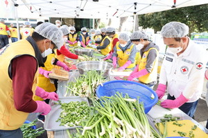 대한적십자사제주특별자치도지사(회장 오홍식)는 최근 적십자사에서 대한적십자사봉사회제주시지구협의회(회장 고영자) 봉사원 등 100여명이 참여한 가운데 마늘 장아찌 5t을 만들어 취약계층 1200가구와 사회복지시설 25곳에 전달했다.이를 위해 이동한 춘강 이사장이 기탁한 성금 1000만원과 김종식 영농조합법인 청정 대표가 후원한 무말랭이 200㎏이 지원됐다.이동한 이사장은 "복지증진을 위해 할 수 있는 최선의 봉사가 이웃간의 나눔"이라며 "앞으로도 소외된 이웃을 돕는 적십자 활동이 지역사회에 확산될 수 있도록 힘을 보태겠다"고 말했다.한