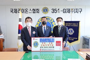 국제라이온스협회 354-G 제주지구(총재 양성춘)는 최근 국제라이온스협회 제주지구 회의실에서 대한적십자사제주특별자치도지사(회장 오홍식)에 경북·강원 산불피해지역 지원을 위한 성금 900만원을 전달했다.이번 성금은 산불피해 이재민 지원과 재난현장 구호활동 등에 사용된다.양성춘 총재는 "갑작스러운 화마로 힘든 시기를 겪고 있는 이재민 분들에게 도움의 손길을 보태고자 성금을 전달했다"며 "일상을 회복하는데 조금이나마 도움이 됐으면 좋겠다"고 말했다. 김재연 기자