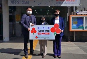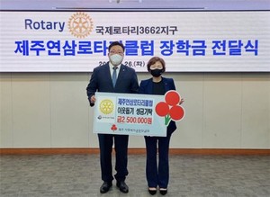 제주연삼로타리클럽(회장 김세환)은 지난 26일 연동주민센터에서 제주사회복지공동모금회에 도움이 필요한 이웃을 위해 사용해 달라며 장학금 500만원과 성금 250만원을 기탁했다.김 회장은 "성금은 회원들이 십시일반 모아 마련했다"며 "앞으로도 제주연삼로타리클럽은 지역사회를 위한 활동을 꾸준히 펼쳐 나가겠다"고 말했다. 홍진혁 기자