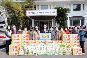 대한적십자사제주특별자치도지사(회장 오홍식)는 최근 4·3유족시부녀회(회장 김효자) 미망인들에게 백미, 레드향 등 500만원 상당의 물품을 지원했다.이날 전달된 물품은 백미(7㎏) 18포와 레드향(10㎏) 45박스로 구성됐으며, 각각 앤트건축자재와 서귀포시 남원읍에 거주하는 김순여씨의 후원으로 마련됐다.오홍식 회장은 "70여년이 지났지만 제주4·3의 아픔은 현재진행형"이라며 "이번 지원이 유족들의 생활에 도움이 됐으면 한다"고 말했다.한편 제주적십자사는 위기가정 긴급지원, 희망풍차 결연지원 등 지역사회 복지증진을 위한 기부금품을 연중