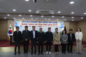 제주도와 제주도지속가능발전협의회가 기후재난 시대에 지속가능한 삶을 위한 지역 대응 방향을 논의했다.10일 제주도에 따르면 도와 제주도지속발전협의회는 이날 오전 10시, 제주도의회 의원회관 대회의실에서 '2025 지속가능발전 제주 실현을 위한 토론회'를 열었다. '일상화된 기후재난 시대, 우리는 어떻게 살아가야 할까?'를 주제로 열린 이번 토론회에는 도내 환경단체, 학계, 행정, 전문가, 지역주민 등 50여명이 참석했다.개회식에서는 고태언 제주도지속가능발전협의회 상임의장이 개회사를, 정민구 제주도의회 환경도시위원회 위원장이 격려사를,