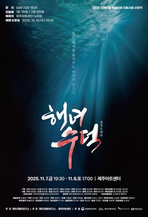 제주아트센터는 오는 7일 오후 7시 30분과 8일 오후 5시, 창작오페라 ‘해녀 수덕’을 무대에 올린다고 6일 밝혔다.제주오페라연구소와 제주아트센터가 공동으로 제작한 이번 작품은 ‘2025 지역대표 예술단체 지원사업’에 선정된 창작오페라다. 바다를 삶의 터전으로 삼은 해녀들의 신앙과 공동체, 그리고 모성의 이야기를 예술적으로 풀어냈다.‘해녀 수덕’은 해녀들이 겪는 생과 사의 경계, 고된 물질 속에서도 이어온 가족과 마을에 대한 사랑, 그리고 세대를 넘어 전해지는 해녀 정신을 오페라의 언어로 재해석한 작품이다.이야기는 바닷가 마을의