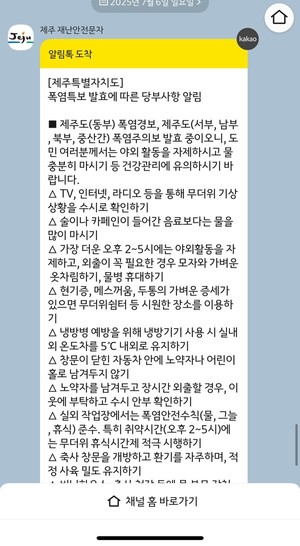 지속되는 폭염으로 제주지역에서 온열질환자가 속출하고 있다.8일 제주소방안전본부에 따르면 이날 오전 11시50분께 제주시 한경면의 한 식당에서 50대 남성 A씨가 어지럼증을 호소한다는 신고가 접수됐다.A씨는 택배 상하차 작업을 하던 중 식당에 들렀다가 어지러움 증세를 보인 것으로 전해졌다.신고를 받고 출동한 소방은 응급처치 후 A씨를 병원으로 이송했다.한편 지난달 28일부터 이날 기준 도내 온열질환 구급 출동 건수는 총 18건이다. 전예린 기자