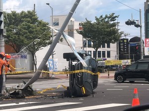 제주에서 차량 두 대가 부딪히는 사고가 발생해 승용차 한 대가 전도되고 운전자 1명이 병원으로 이송됐다.15일 제주소방안전본부에 따르면 이날 오전 10시4분께 제주시 연동 신시가지 입구 교차로에서 차량 1대가 전도됐다는 신고가 접수됐다.곧바로 현장에 출동한 119구급대는 부상자 1명을 발견해 인근 병원으로 이송했다.경찰은 정확한 사고 경위를 조사 중이다.전예린 기자