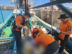 제주 해상에서 조업 중 바다에 빠진 선원이 숨지는 사고가 발생했다.22일 제주소방안전본부 등에 따르면 이날 오전 11시37분께 제주시 애월읍 동귀 앞 해상에서 그물 작업을 하던 60대 선원 A씨가 물에 빠졌다는 신고가 접수됐다.A씨는 출동한 119구급대에 의해 응급처치를 받으며 인근 병원으로 이송됐지만 결국 숨졌다.해경은 정확한 사고 원인을 조사하고 있다.전예린 기자