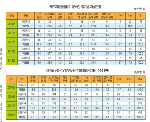 제주도 매해 자살예방 계획 추진 광역정신건강센터도 운영도내 자살사망자 2015년 150명에서 2018년 201명 급증인구10만명당 연령표준화 자살률 27.3명 충북이어 두 번째동기별 정신과적 질병 30.4%, 경제적 문제 29.8%에 달해 제주특별자치도는 2017년 세계보건기구(WHO)로부터 아시아 도시 최초로 국제안전도시 3차 공인을 받았다. 국제안전도시 실행과제 중 자살예방분야도 포함됐지만 제주지역에서 자살사망자는 매해 증가하고 있고, 인구 10만명당 연령표준화 자살률 역시 전국 지자체 중 2위로 분석되는 등 심각한 사회문제로