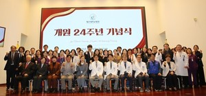 제주대학교병원은 지난달 31일 대강당에서 개원 24주년 기념식을 열고 상급종합병원 지정과 지역 완결적 의료체계 구축을 다짐했다.이번 기념식은 병원장 기념사, 20년 이상 장기근속자에 대한 표창 수여, 외부인사 특별상 시상 순서로 진행됐다.최국명 병원장은 "제6기 상급종합병원 지정이라는 중요한 도전이 기다리고 있다"며 "이를 통해 제주대학교병원이 도약하는 계기이자 지역의료 수준을 높이는 중요한 전환점이 될 것"이라고 강조했다.이어 "그동안 코로나19와 의정 사태로 의료계는 어려움에 직면했지만 제주대학교병원은 지난해 4월 비상 경영을