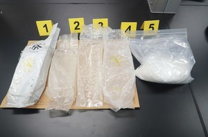 지난달 31일과 이달 1일 제주시 조천읍 해안가에서 마약이 잇따라 발견된 데 이어 5일 조천읍 신촌리 해안에서 또다시 마약으로 보이는 물질이 발견됐다.제주동부경찰서에 따르면 이날 오후 4시40분께 신촌리 인근 해안가에서 낚시를 하던 한 시민이 바다에 떠밀려온 차봉지 형태의 비닐을 발견해 뜯어보니 안에 하얀 가루가 들어 있어 경찰에 신고했다.출동한 경찰이 현장을 확인한 결과, 비닐 안에는 케타민으로 추정되는 가루 약 1㎏이 담겨 있었다.경찰은 해양경찰과 공조해 마약 유입 경로와 관련자 여부를 조사하고 있으며, 앞서 애월읍 해안에서 발