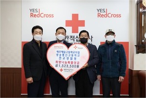 제주제일고등학교부설방송통신고등학교(총학생회장 신광우) 전교생은 최근 대한적십자사제주특별자치도지사(회장 오홍식)를 방문해 희망나눔 특별성금 152만3500원을 기탁했다.학생들은 지역사회 소외계층을 돕기 위해 교내에 모금함을 마련해 십시일반 성금을 모금했다.성금은 위기가정 긴급지원, 희망풍차 결연가구 지원 등 인도주의 사업에 사용된다.신광우 총학생회장은 "지역의 어려운 이웃을 돕고 나눔문화를 전파하고자 성금을 기탁하게 됐다"며 "작은 정성이지만 전교생의 마음을 담아 모은 성금이 소외된 이웃에게 희망으로 전달되길 바란다"고 말했다. 김재