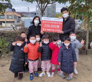 아이들의 고사리손으로 마련된 성금이 제주지역 위기 아동들에게 전달돼 훈훈함을 더하고 있다.제주시 오등동에 위치한 꽃피는산골어린이집(원장 고용복)은 최근 '꽃산 벼룩시장' 바자회를 통해 마련된 수익금 23만6000원을 월드비전 제주나눔센터(센터장 강동균)에 기부했다고 14일 밝혔다.이번 성금은 꽃산 벼룩시장을 통해 아이들이 평소에 사용하지 않는 학용품 등 물건을 판매한 수익금으로 마련됐으며 아이들의 뜻에 따라 코로나19로 어려움을 겪고 있는 가정에 전달된다.월드비전 관계자는 "아이들이 직접 물건을 사고 파는 활동을 통해 경제 개념을