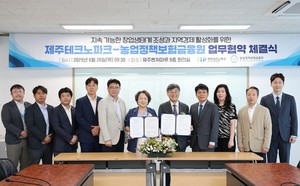제주테크노파크(원장 지영흔)와 농업정책보험금융원(원장 서해동)은 26일 제주벤처마루에서 도내 농식품기업 창업과 성장을 위한 업무협약을 체결했다.협약을 통해 양 기관은 도내 농식품기업 육성을 위한 정보 공유와 투자 및 자금 연계, 멘토링 등 공동행사 개최에 협력한다.
