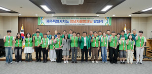 제주도는 16일 제주도청 2청사 자유실에서 제주한라대학 사회복지·간호학 전공생 23명으로 구성된 '청년자율방재단' 발대식을 개최했다.도에 따르면 MZ세대가 주축이 된 청년자율방재단은 전국 광역지자체 최초로, 기존 방재단의 고령화 문제를 극복하고 디지털 환경에 친숙한 점을 활용해 민간 방재활동의 새로운 모델을 제시하기 위해 마련됐다.청년자율방재단은 무더위쉼터 점검과 행동요령 홍보 등 활동을 시작으로, 유튜브 등 디지털 채널을 활용한 콘텐츠 제작에 참여할 계획이다.도는 방재단원에 지역 자율방재사 민간자격 취득을 지원하고, 실무 중심 멘