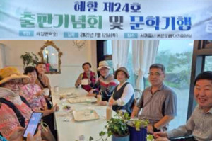 제주 혜향문학회(회장 김호성)는 최근 붉은오름 자연휴양림에서 ‘혜향문학 제24호 출판기념회 및 문학기행’을 진행했다.이번 행사에서 회원들은 세미나실에서 혜향문학 제24호에 수록된 작품을 낭송하는 시간을 가진 뒤 붉은오름에서 트레킹 및 창작활동을 펼쳤다.김호성 회장은 “이번 행사가 회원들의 창작활도엥 영감이 됐길 바란다”며 “혜향문학회는 앞으로도 제주 문학 발전을 위한 다양한 행사를 추진해 나가겠다”고 말했다.한편 혜향문학 24호에는 회원들이 창작한 수필과 시 등 다양한 작품이 수록됐다. 또 평론과 특별기고 등 혜향문학회의 발걸음을