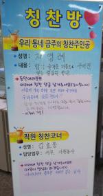 '칭찬캠페인' 특수시책 두달 넘게 지속주인공 7명 선정 댓글 담긴 액자 전달주민 상호배려 지역 공동체 구현 기여 제주시 이도1동(동장 전여춘)이 건강한 공동체 형성을 위해 올초부터 시행한 칭찬운동을 지속적으로 실천, 성과를 거두면서 공직사회의 귀감이 되고 있다. 이도1동은 올해 주민센터 특수시책의 일환으로 공직사회 먼저 칭찬운동을 솔선수범하기 위해 '