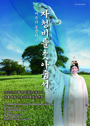 와흘메밀마을회가 농경의 신 자청비를 찾는 여정을 통해 제주 선인들의 삶을 재현한다와흘메밀마을회는 오는 19일 오후 4시 와흘 메밀 마을 야외특설공연장에서 '자청비를 ᄎᆞᆽ아줍서'를 공연한다.이번 공연은 제주도 민속문화유산으로 지정된 와흘본향당의 의미를 되새기고자 마련됐다.본향당은 마을 공동체의 성소이면서 정기적인 당굿을 통해 마을 주민들의 유대감을 강화하는 기회를 제공한다. 과거 제주인들은 매년 음력 1월 14일 마을의 본향당산에 세배를 올리는 '신과세제'를 통해 한 해의 마을 행복을 기원했다.공연은 제주마을제의 원형이 가장 잘 남
