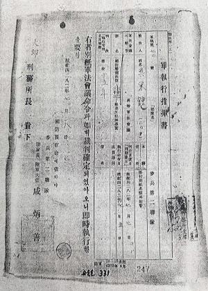 수형인 2명에 대한 군집행지휘서' 발견 이름·판결 등 상세히 기록재심청구재판 증거로 제출 생존자 청구 재심서 중요한 증거" 기대제주4·3 당시 허술하게 진행된 군사재판(군법회의)으로 억울하게 옥살이를 한 4·3수형인에 대한 형집행을 입증할 수 있는 공문서가 공개돼 귀추가 주목된다. 특히 현재 진행중인 4·3수형인 재심청구 재판에 큰 변수로 작용할 것으로 보인다. 제주4·3진상규명과 명예회복을 위한 도민연대(이하 4·3도민연대)는 국가기록원으로부터 받은 수형인 중 오영종씨(88)과 현우룡씨(93)에 대한 '군집행지휘서