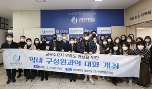 제주대학교 교육수요자만족도관리센터(센터장 김화년 교수)는 19일 대학 취업전용강의실에서 학생ㆍ조교ㆍ직원 등 대학 구성원이 참여한 가운데 교육수요자만족도 조사 결과를 공유하고 대학 발전을 모색하는 대화의 시간을 가졌다.'코로나19' 방역수칙을 준수하면서 1부와 2부로 나눠 진행된 행사는 교육수요자만족도 결과 분석 발표, 브레인스토밍을 통한 참가자 의견 개진 및 개선방안 도출 순으로 진행됐다.참가자들은 '대학 발전계획 6대 목표 달성'을 위해 교육수요자만족도 조사 결과 개선이 시급한 항목에 대해 진솔한 대화를 나누며 의견을 개진했다.특