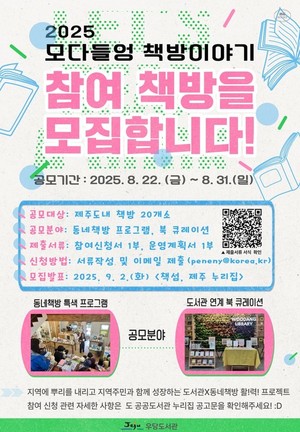 우당도서관이 지역 독서 생태계 활성화를 위해 ‘2025 모다들엉 책방 이야기’ 참여 동네책방을 8월 31일까지 모집한다.올해는 지난해보다 5곳 늘어난 총 20곳을 선정해 책방 정체성을 담은 특별 프로그램과 도서관 연계 북 큐레이션을 운영한다.사업은 9~12월 진행되며, 북 큐레이션은 우당도서관 1층 실내숲 초록정원에 전시해 시민에게 새로운 독서 경험을 제공한다.참여 희망 책방은 신청서·운영계획서를 이메일(peney@korea.kr) 또는 사무실로 제출하면 된다.기획 타당성·실행 가능성·지역 문화 거점으로서의 역할 등을 평가해 최종