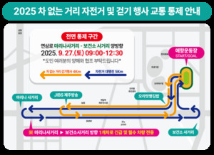 오는 27일 제주시 연삼로에서 탄소중립 실천과 건강도시 조성을 위한 ‘차 없는 거리’ 행사가 추진된다.다만 제주에서 가장 차량 통행량이 많은 도로를 전면 통제해 행사가 추진됨에 따라 심각한 교통난이 발생하는 것은 아닌지 우려가 제기되고 있다.제주특별자치도는 27일 애향운동장과 연삼로 일대에서 ‘2025 차 없는 거리 자전거 & 걷기행사’를 개최한다고 2일 밝혔다.제주도는 이날 오전 10시 애향운동장에서 출발해 보건소 사거리와 JIBS 제주방송, 마리나 사거리를 경유하는 왕복 5㎞ 자전거 코스와 4㎞ 걷기 코스를 마련한다.이를 위해