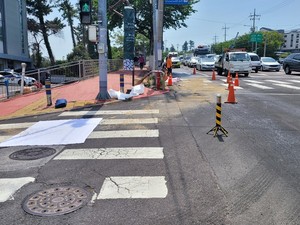 도로 위 유출된 기름에 미끄러져 70대 보행자가 다치는 사고가 발생했다.13일 제주소방안전본부에 따르면 이날 오전 10시59분께 제주대학교병원 인근 횡단보도에서 70대 여성 A씨가 넘어졌다는 신고가 접수됐다.당시 굴삭기 유압호스에 채워진 기름이 밖으로 흘러 나오면서 A씨가 넘어진 것으로 알려졌다.소방당국은 사고 발생 직후 인근 도로에 모래를 살포하는 등 안전조치를 취했다.전예린 기자